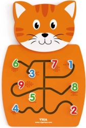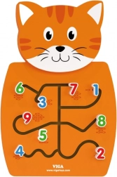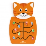 Pisică din lemn cu labirinturi pentru deplasarea numerelor și dezvoltarea motricității fine.