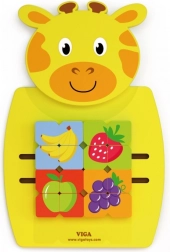 - Designul girafei cu puzzle-uri cu fructe pictate pe care copiii le pot muta.