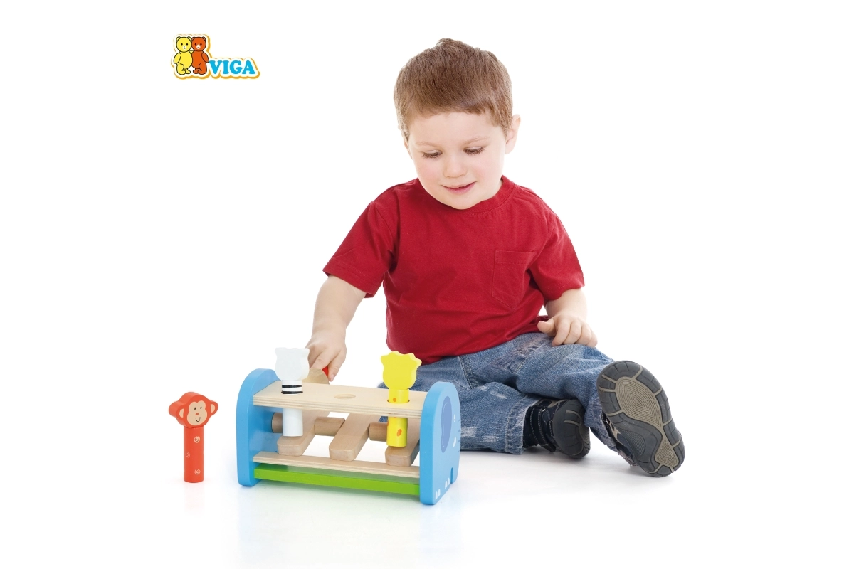 Loviturile cu ciocănelul dezvoltă priza, forța și coordonarea mână–ochi, iar principiul cauză–efect îi învață pe copii gândirea logică.