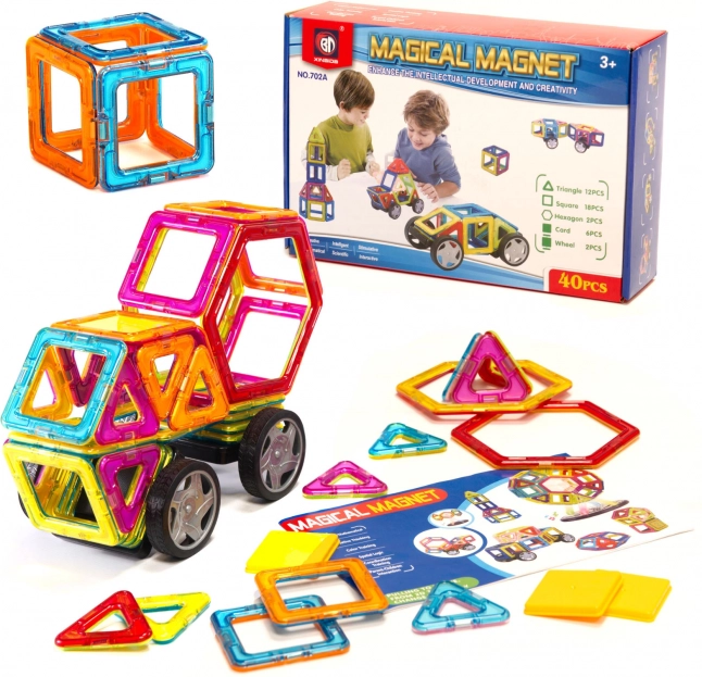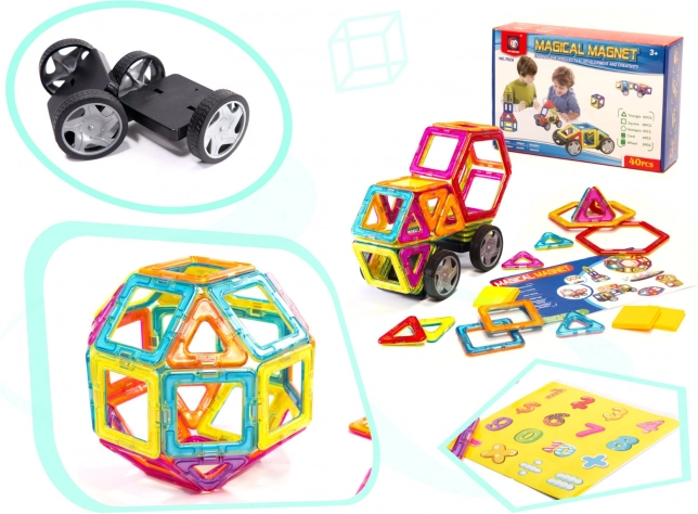 Împreună cu copiii dumneavoastră, începeți construirea unei noi case sau a unei mașini fantastice cu unul dintre cele mai mari seturi de construcție, care conține 40 de piese. Seturile magnetice includ toate elementele necesare pentru construirea diverselor structuri.