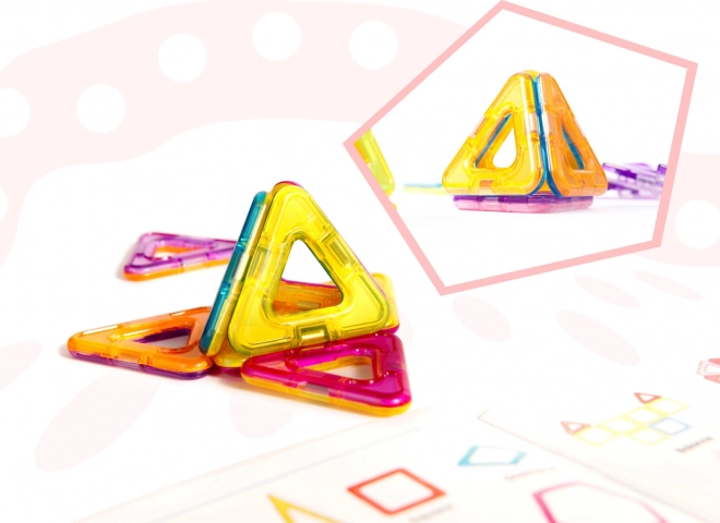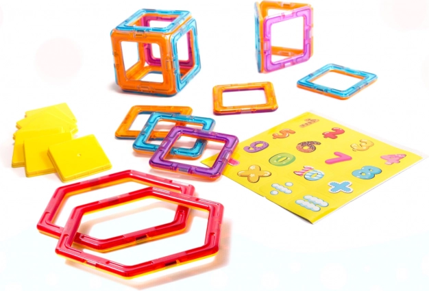 Un singur set, multe posibilități – piesele magnetice de diverse forme vă permit să creați forme 3D sau plate datorită magneților puternici.