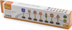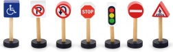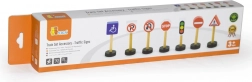 Această jucărie de memorie și educativă conține 7 semne de circulație din lemn diferite, care ajută copiii să își însușească regulile de bază ale traficului rutier. Jucăria este ideală pentru copii de la 3 ani și completează perfect orice set de construcție sau cale ferată.