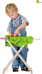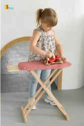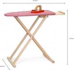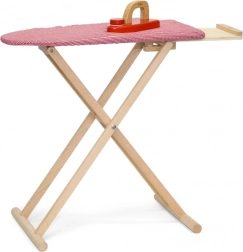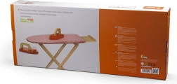 Setul conține o masă pliabilă cu poliță de depozitare și un fier de călcat din lemn cu buton rotativ, pentru și mai multă distracție. Datorită dimensiunilor compacte se strânge ușor și se potrivește în orice cameră de copii.