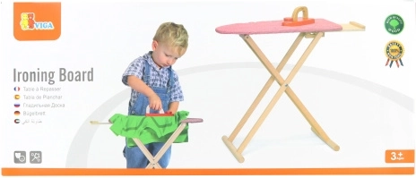 Creați-le copiilor un colțișor de casă ca în realitate! Masa de călcat din lemn cu fier de călcat VIGA aduce un joc de-a gospodăria realist, care susține imaginația, abilitățile sociale și motricitatea fină. Construcția din lemn stabilă, formatul compact și husa textilă cu model atractiv asigură durabilitate și utilizare confortabilă.