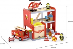 Această stație de pompieri din lemn, realizată cu atenție la detalii, le oferă copiilor un mediu autentic pentru misiuni de salvare. Datorită stației roșii pe mai multe niveluri, mașinii cu scară și platformei de aterizare pentru elicopter, copiii își pot crea cu ușurință propriile povești și își pot exersa coordonarea și gândirea logică.