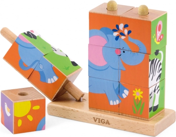 Cuburile glisante din lemn Viga Safari sunt o jucărie atemporală care îi conduce pe copii în mod natural spre învățare prin joacă. Cele nouă cuburi fin finisate, pe o bază stabilă, permit asamblarea a patru motive colorate cu animăluțe. Datorită pinilor înclinați, cuburile se rotesc ușor, iar copiii găsesc mai repede piesa potrivită.
