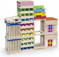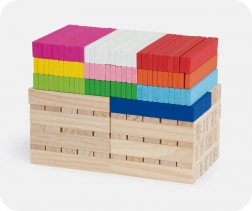Blocurile sunt lăcuite cu vopsele netoxice în culori vii, pentru a asigura un joc sigur.