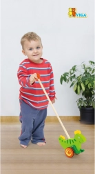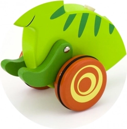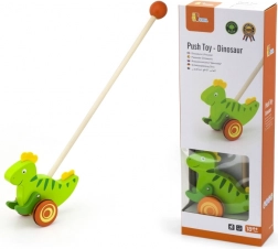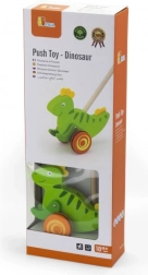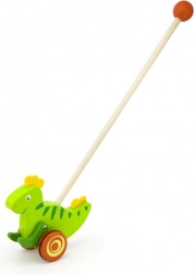 Jucăria Dinozaur de Împins din Lemn este o jucărie clasică destinată copiilor care încep să se miște. Acest accesoriu robust este echipat cu roți cu accesorii antiderapante care protejează podeaua și facilitează mișcarea. Dinozaurul verde își mișcă energic mâinile la împingere, captând atenția și motivând copilul să se miște mai mult.
