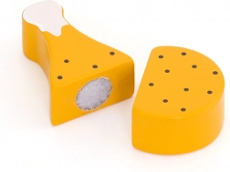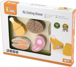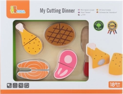 Fiecare bucată de carne este concepută să imite realist alimentele reale. Copiii pot folosi cuțitul din lemn pentru a tăia carnea și apoi să o unească din nou cu ajutorul unui arici. Setul este un accesoriu minunat pentru orice bucătărie de joacă și sprijină jocul creativ.