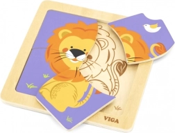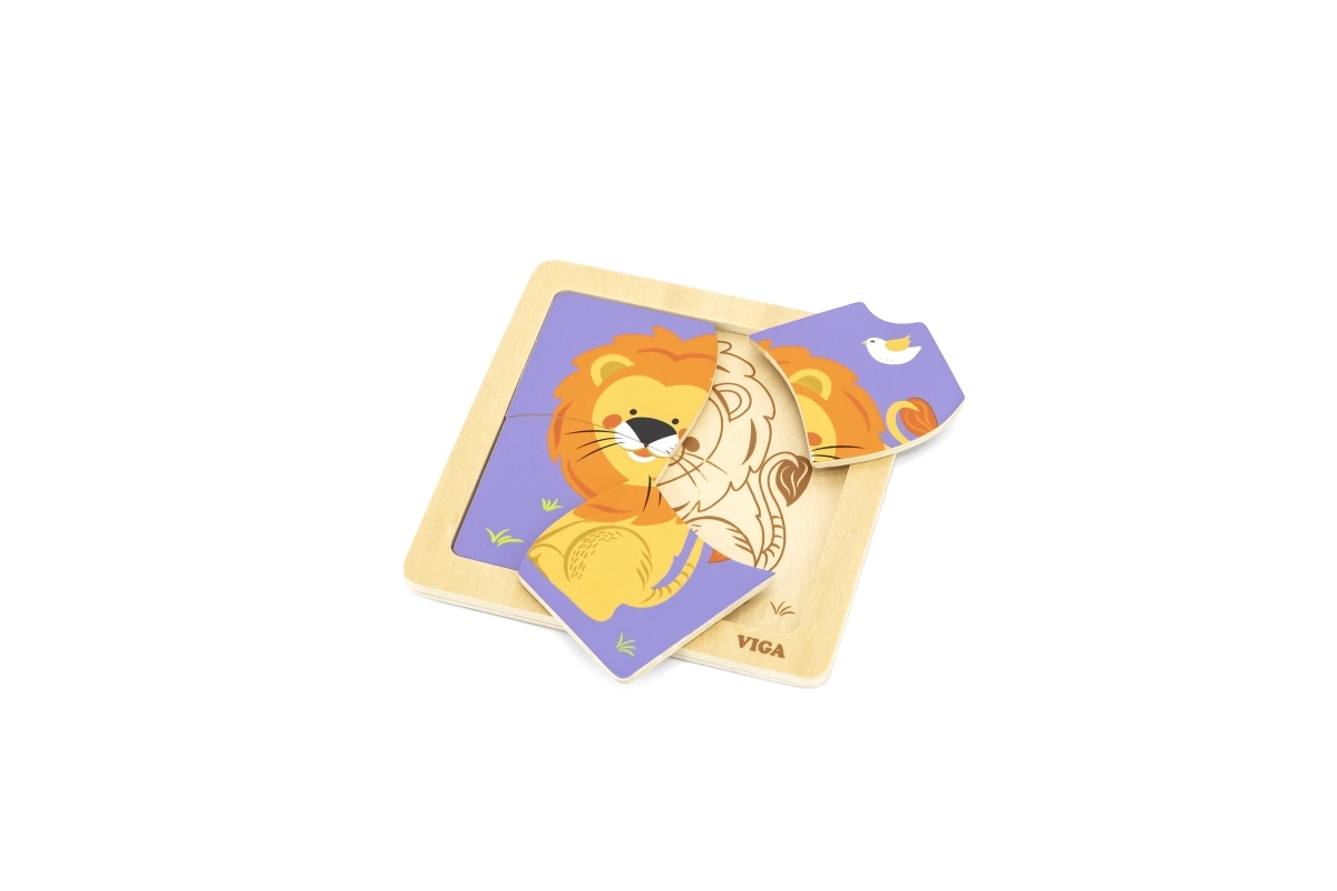 Acest puzzle din lemn de calitate, cu o imagine veselă a unui leu, este conceput pentru mâini mici. Datorită celor patru piese robuste, cu margini netede, copiii învață cu ușurință să potrivească formele și exersează răbdarea și concentrarea. Baza practică din lemn menține piesele la locul lor și ușurează asamblarea.