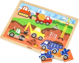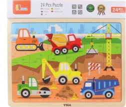 Descoperă primele încercări de asamblare cu puzzle-urile din lemn VIGA cu utilaje de construcții – ideale pentru copii de la 2 ani. Piesele și rama din lemn, robuste, ușurează manipularea și dezvoltă motricitatea fină, gândirea logică și răbdarea. Imaginea poate fi asamblată în ramă sau separat, pentru o provocare mai mare.