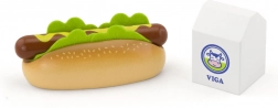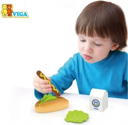 Acest set din lemn VIGA de înaltă calitate aduce copiilor un joc de gătit realist. Hot dogul cu chiflă, salată și muștar, împreună cu „cutia de lapte”, dezvoltă creativitatea și îi învață pe copii bazele jocului social. Datorită construcției solide din lemn, setul este ideal pentru joaca de zi cu zi.