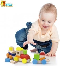Trenulețul colorat din lemn, stivuibil de la VIGA dezvoltă motricitatea fină, sortarea culorilor și formelor și creativitatea. Construcție din lemn stabilă, muchii rotunjite sigure și dimensiune ideală pentru mâini mici. O jucărie educațională excelentă pentru copii de la 18 luni.