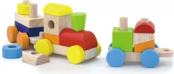 - Tren din lemn stivuibil (locomotivă + 2 vagoane)