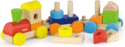 Descoperiți o jucărie din lemn atemporală care îmbină distracția cu învățarea. Trenul stivuibil VIGA este format dintr-o locomotivă și două vagoane cu blocuri colorate ce pot fi rearanjate după dorință. Copiii își exersează coordonarea mână–ochi, gândirea logică și recunoașterea culorilor și formelor.