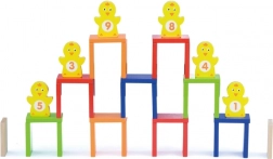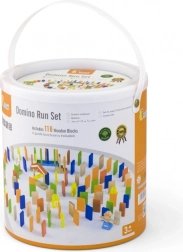 Jocul dezvoltă abilități esențiale: antrenează coordonarea mână–ochi, susține coordonarea, precizia mișcărilor și cooperarea între copii. După asamblare, este suficient să împingeți prima piesă și să vă bucurați de efectul domino perfect. Găleata practică cu mâner facilitează depozitarea și transportul.