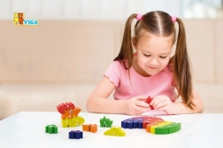 Piesele colorate atrag atenția și ajută la diferențierea culorilor, îmbogățind învățarea prin joacă.