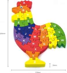 Întreprindeți o călătorie educativă distractivă cu puzzleul 3D din lemn în formă de cocoş, care nu doar facilitează învățarea alfabetului, dar și dezvoltă motonitatea fină și gândirea logică a copiilor. Fiecare piesă este marcată cu o literă din alfabetul englez, lucru ce susține recunoașterea literelor și abilitățile lingvistice.