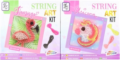 Acest set creativ îți permite să creezi propriile imagini din sfoară, care vor fi o decorațiune grozavă pentru camera ta. Pachetul include o placă din spumă, o ramă, ținte, 4 culori diferite de ață de bumbac și alte accesorii necesare pentru asamblarea imaginilor.