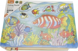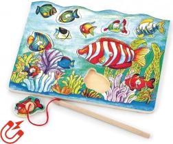 Acest joc de pescuit din lemn aduce copiilor bucuria de a prinde peștișori colorati și, în același timp, le dezvoltă abilitățile. Piesele se prind ușor de undița magnetică, ceea ce crește reușita și motivația copiilor. Ideal pentru joaca acasă sau ca cadou.