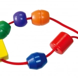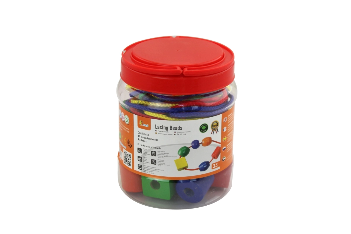 Acest set de mărgele din lemn, extra mari, este o jucărie ideală pentru dezvoltarea timpurie a copiilor. Datorită culorilor intense și formelor variate, copiii exersează sortarea, numărarea și creativitatea, în timp ce își întăresc priza și capacitatea de concentrare. Dimensiunea mărgelelor este adaptată mâinilor copiilor, astfel încât înșiratul este ușor și distractiv.