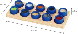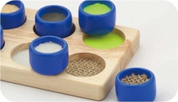 Placa și cilindrii oferă zece materiale diferite, care sprijină dezvoltarea percepției tactile și a abilităților cognitive.