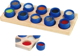 Copilul are sarcina ca, după senzația la atingere, să găsească textura corespunzătoare și să potrivească cilindrul în orificiul corect – fără a folosi vederea. Astfel se antrenează procesele tactile, vestibulare și proprioceptive, esențiale în vârsta preșcolară. Execuția solidă din lemn asigură durabilitate și o viață lungă a produsului.