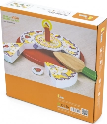 Setul este realizat din lemn rezistent, cu margini netede și vopsele sigure pentru sănătate. Ideal pentru camera copiilor, grădinițe și colțuri de joacă – susține jocul de rol, împărtășirea și primele exerciții de numărare a feliilor.