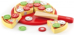 Pizza este împărțită în felii și include o spatulă/cuțitaș, astfel încât copiii pot tăia și servi ca într-o pizzerie adevărată.