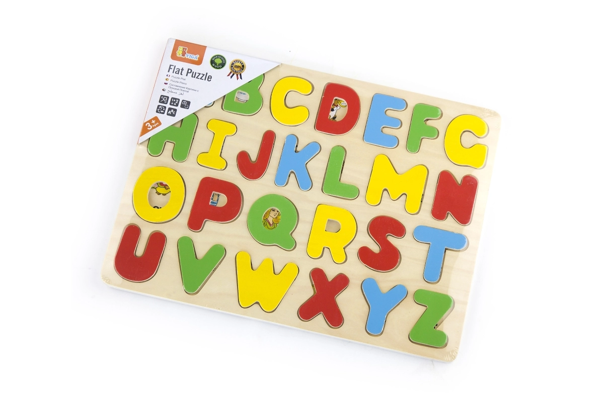 Puzzle-ul din lemn cu alfabet este un instrument ideal pentru prima familiarizare cu literele. Piesele colorate îi motivează pe copii să descopere formele și să asocieze corect literele cu decupajele, consolidând coordonarea mână–ochi și concentrarea. Construcția solidă din lemn garantează o durată de viață lungă și joacă în siguranță.