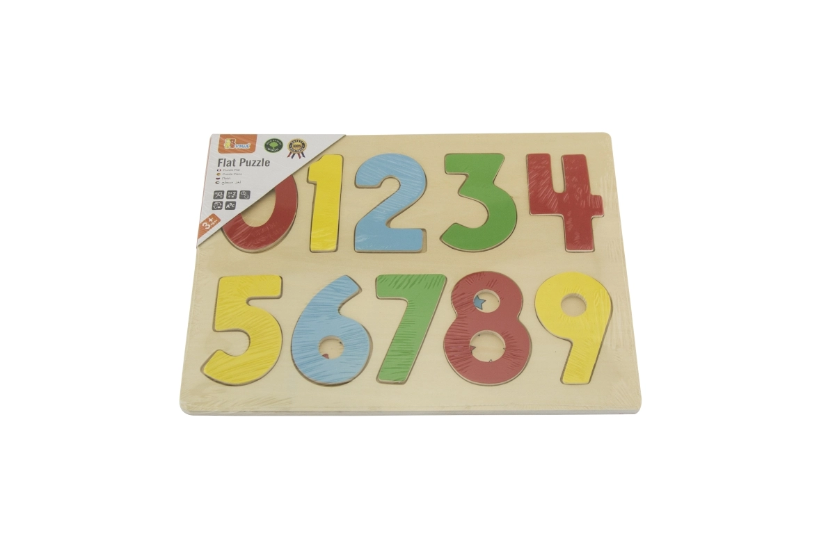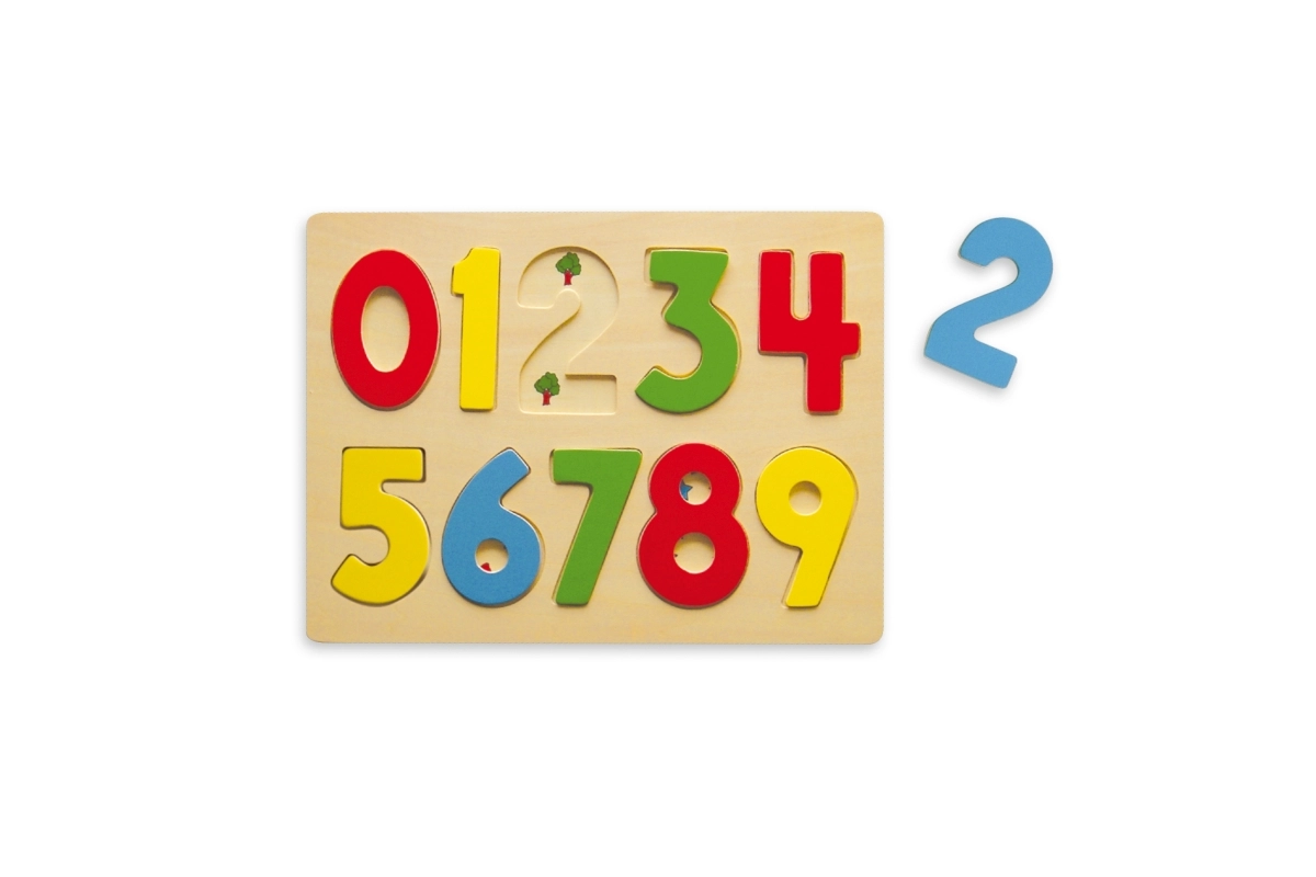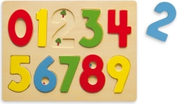 Acest puzzle numeric din lemn oferă zece piese colorate separate cu cifrele 0–9, care se inserează în decupajele corespunzătoare. Copiii dobândesc în mod natural recunoașterea cifrelor și își exersează răbdarea și concentrarea.