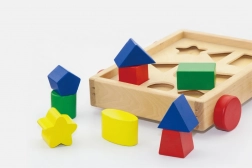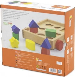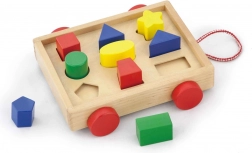 Puzzle-ul din lemn cu forme - cărucior oferă copiilor o modalitate distractivă și educativă de a îmbunătăți motricitatea fină. Setul include un cărucior cu dimensiunile 24,5 x 22 x 7 cm și 9 cuburi colorate în forme diferite, care trebuie introduse corect. Acest cărucior îi motivează pe copii să se joace, în timp ce învață să recunoască formele.