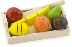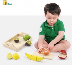 Jucăria conține fructe frumos colorate, care atrag ușor copiii și le permit imitarea realistă a activităților din bucătărie.