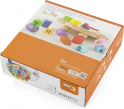 Descoperiți un ceas din lemn de calitate, cu piese de inserat, care îmbină jocul cu învățarea. Copiii învață într-un mod distractiv să recunoască numerele, culorile și formele, în timp ce așază piesele la locul potrivit. Construcția robustă din lemn asigură durabilitate și joacă în siguranță.