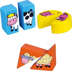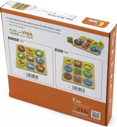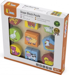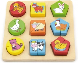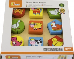 VIGA oferă puzzle educațional din lemn cu nouă piese colorate, din care copiii pot asambla imagini ale diverselor animale, precum văcuțe, rațe și iepuri. Jocul permite dezvoltarea abilităților motorii și cunoașterea culorilor și formelor. Datorită culorilor sigure și netoxice, aceste puzzle-uri sunt ideale pentru copiii mici.