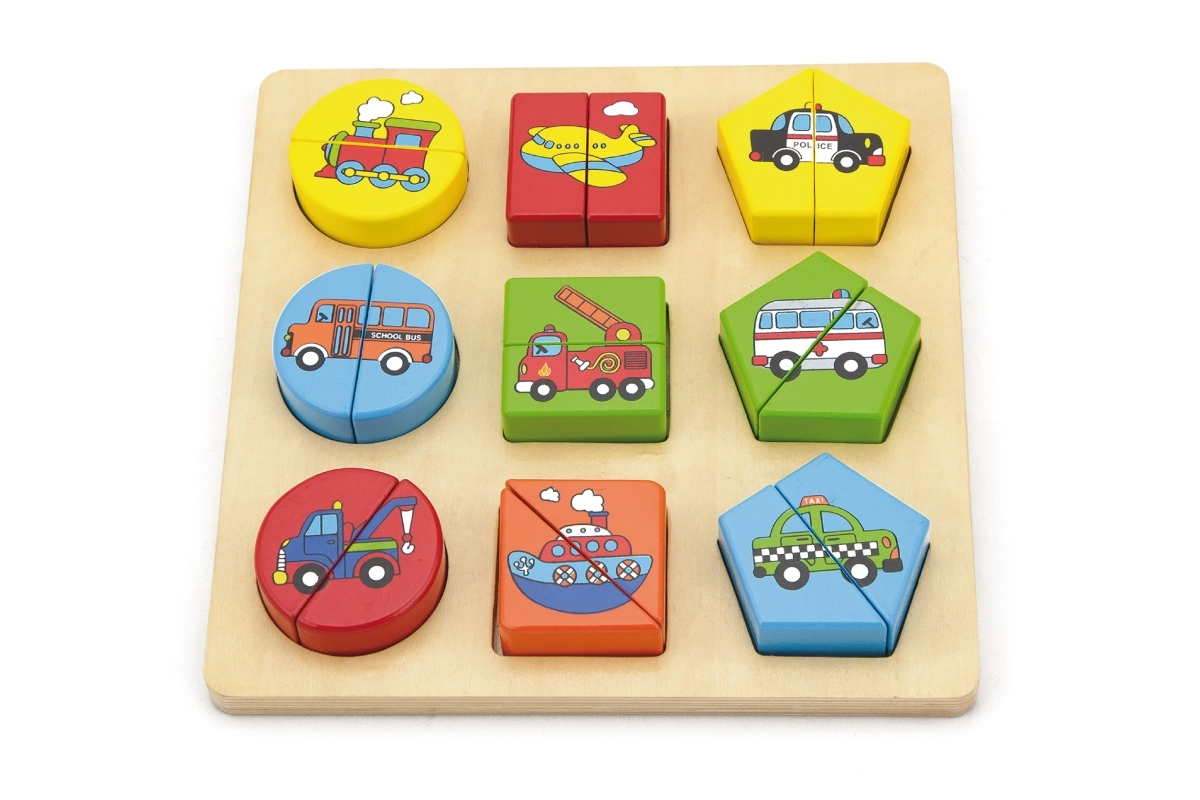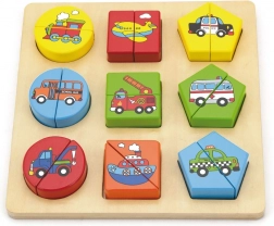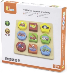Puzzle din lemn cu piese de inserare - transport, în cutie în limba cehă