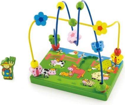 Labirint din lemn cu mărgele – Fermă, cu fermier magnetic