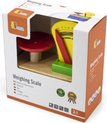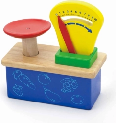 Acest cântar robust din lemn le oferă copiilor o descoperire distractivă a greutăților și numerelor. Printr-o simplă apăsare a platoului de cântărire, acul se mișcă, iar pe cadran apar valori – astfel copiii înțeleg cu ușurință bazele măsurării și ale echilibrului. Datorită culorilor vesele și scării ușor de citit, cântarul este un accesoriu grozav pentru bucătăria de jucărie și colțișorul de joc de-a magazinul.