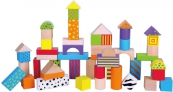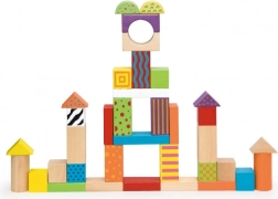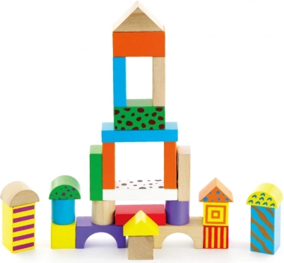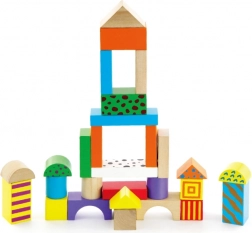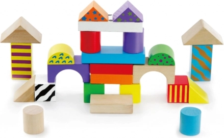 Diverse forme – cuburi, cilindri, arcade și acoperișuri – stimulează imaginația și susțin motricitatea fină și reprezentarea spațială.