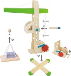 Copiii pot ridica și coborî încărcătura prin simpla rotire a rotiței de înfășurare. Mecanismul susține coordonarea mână–ochi și oferă o funcționare lină și sigură.