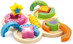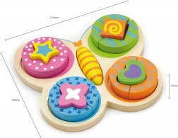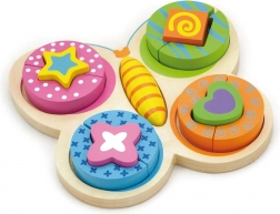 Un puzzle din lemn adorabil în formă de fluture oferă copiilor de la 2 ani ore de distracție și învățare. Datorită culorilor vii, pieselor mari și sigure și marginilor frezate, piesele stau perfect la locul lor. Jucăria sprijină motricitatea fină, coordonarea mână–ochi și creativitatea.