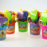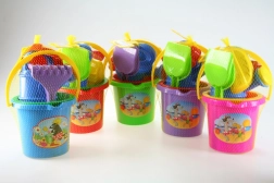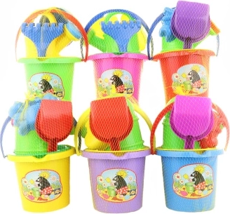 Set de joacă pentru nisip, pentru copii de la 3 ani, conține tot ce este necesar pentru distracție pe plajă sau în groapa cu nisip: găleată, sită, lopățică, greblă, stropitoare și formă. Datorită compoziției practice și materialului plastic ușor, este ideal pentru micii constructori. Echipare completă pentru nisip, execuție ușoară și sigură și imagine drăguță pe găleată care îi va încânta pe toți micii constructori.