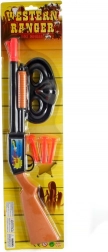 Pornește spre Vestul Sălbatic cu acest set western distractiv. Copiii se vor bucura de multă acțiune datorită puștii cu ventuze, sigură pentru joacă atât în casă, cât și în aer liber. Setul include și o mască pentru față, care adaugă autenticitate jocului.