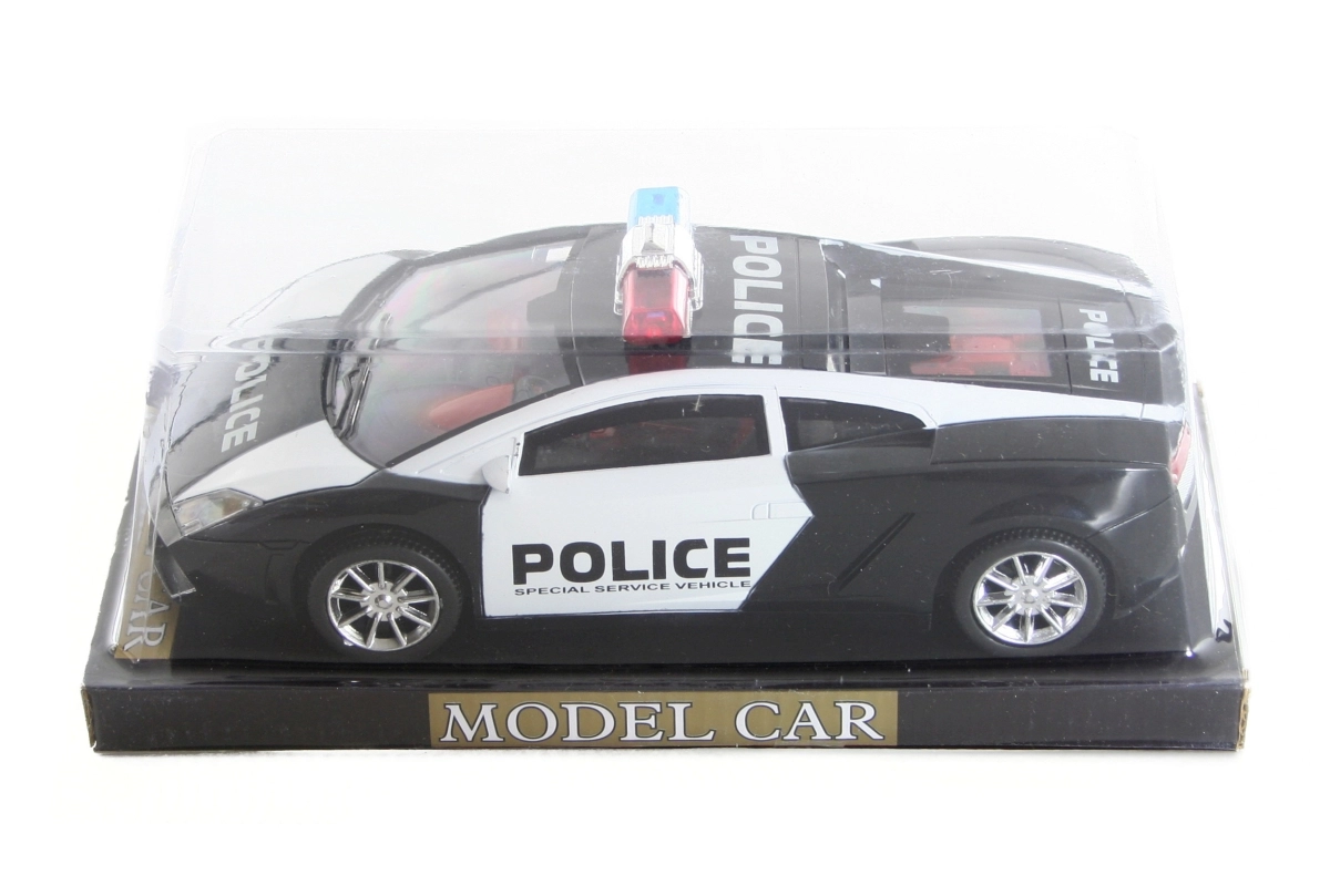 Mașină de poliție cu mecanism cu volantă. Dimensiunile mașinii aprox. 22 x 9 x 7 cm. Dimensiunile ambalajului aprox. 26 x 13 x 10 cm. Vârsta 3+