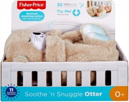 Vidră de pluș Soothe 'n Snuggle este concepută pentru somnul liniștit al bebelușilor. Ridicarea și coborârea ritmică a burticii imită respirația naturală, care îi liniștește intuitiv pe copii. În plus, vidra oferă până la 30 de minute de melodii, sunetul bătăilor inimii, sunet alb și un sforăit delicat și poate fi adaptată stării de spirit a bebelușului.