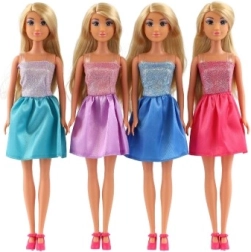 Fiecare păpușă are o rochie stilată – roz, albastră, mov sau turcoaz. Minunate pentru colecționare și combinarea ținutelor.