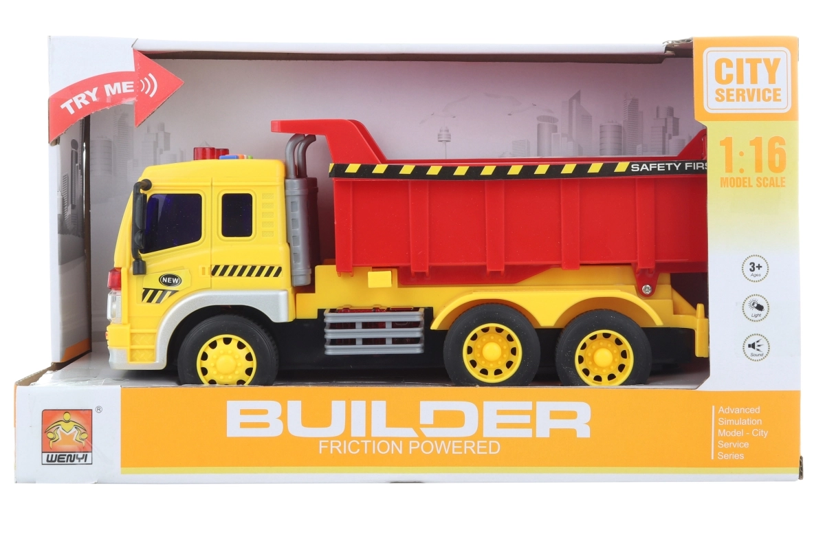 Acest camion basculant pentru copii oferă multă distracție datorită efectelor luminoase și sonore activate prin apăsarea butoanelor. Datorită dimensiunilor de aproximativ 27 × 12 cm, se ține confortabil în mână și este perfect pentru joaca pe covor sau în camera copilului. Bateriile sunt incluse în pachet, astfel încât puteți porni imediat „pe șantier”.
