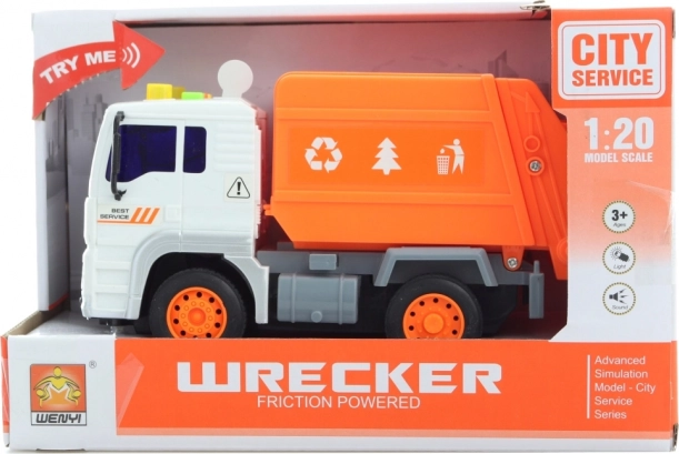 Mașină de gunoi pe baterii cu lumini și sunete. Dimensiuni compacte, baterii incluse. Jucărie ideală pentru copii de la 3 ani.