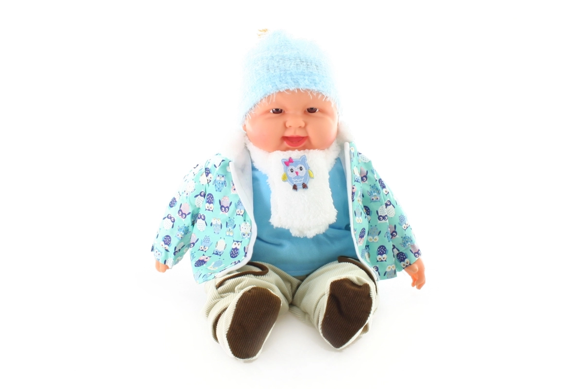 Drăgălașă păpușă mare – bebeluș băiețel cu corp moale, care va bucura orice copil. Hăinuța cu bufnițe se poate dezbrăca și îmbrăca ușor. Ideală pentru dezvoltarea imaginației și a îngrijirii. Corp moale, haine ușor de scos, mărime mai mare pentru ținut confortabil în brațe.