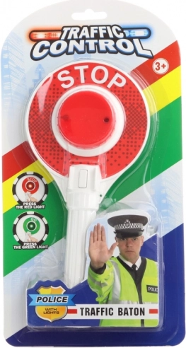 Descoperă paleta de poliție cu lumină pentru copii - luminează roșu și verde, cu baterii incluse. Potrivită de la vârsta de 3 ani, dimensiune de 23 cm.